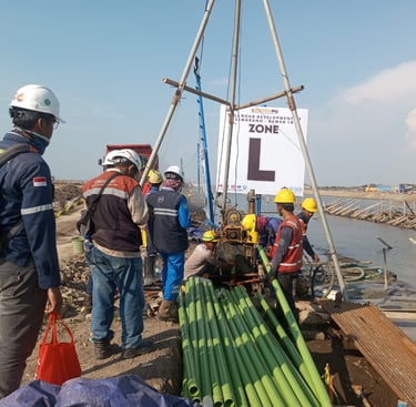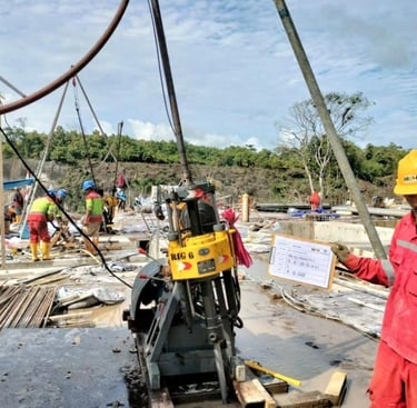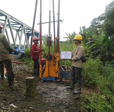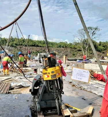 BAGZA GEOKARYA KONSULTAN menyediakan layanan drilling & grouting untuk pekerjaan bendungan guna meningkatkan stabilitas dan kedap air pondasi. Pekerjaan dilakukan untuk memperkuat batuan dasar, mengurangi rembesan, serta memastikan keamanan struktur bendungan.